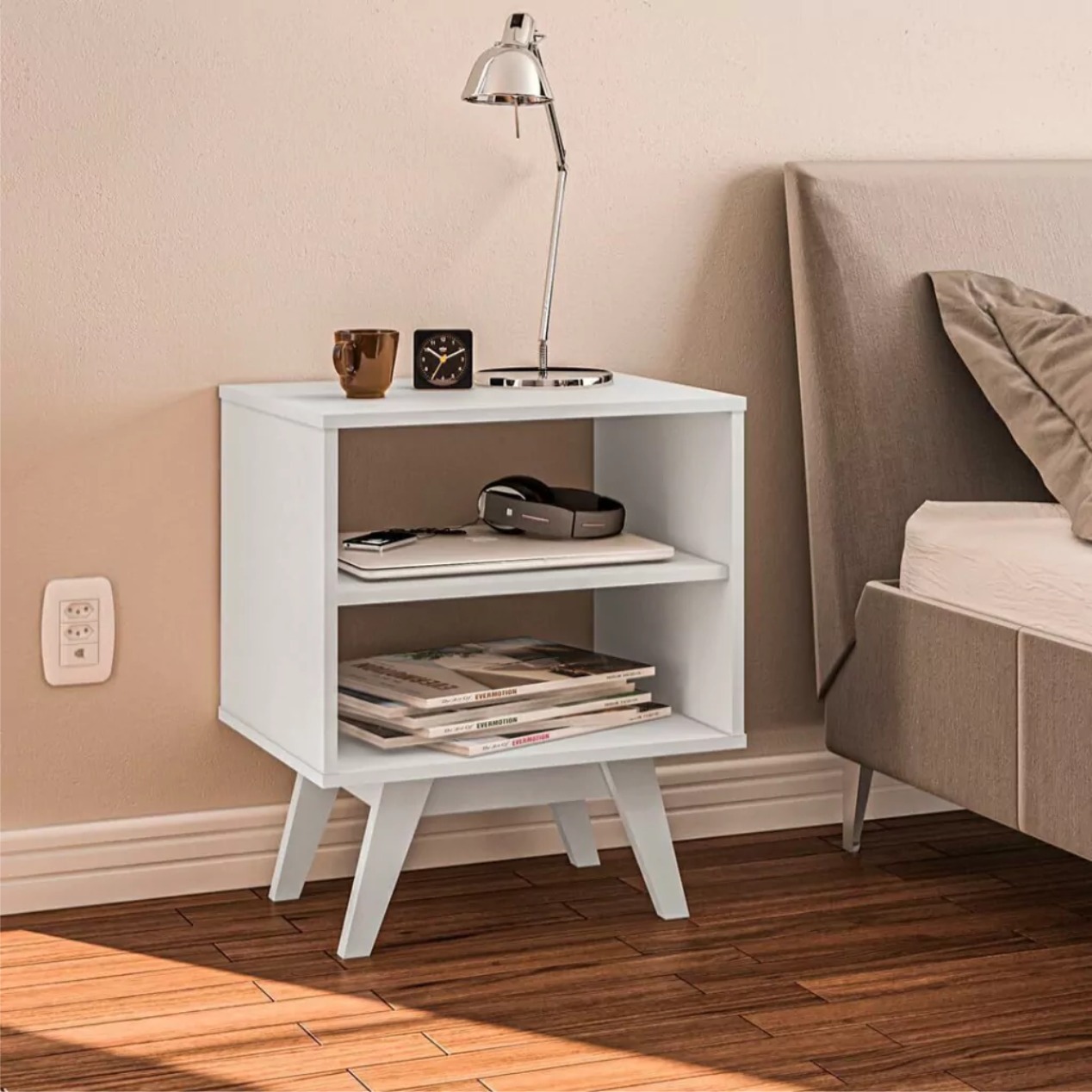 con correderas metálicas que te garantizan cajón fácil de abrir y cerrar. Un espacio de almacenamiento exterior de buen tamaño. Patas fabricadas en madera con recubrimiento de melamina con tapón de resbalón en la parte inferior con protección para evitar la humedad del piso.